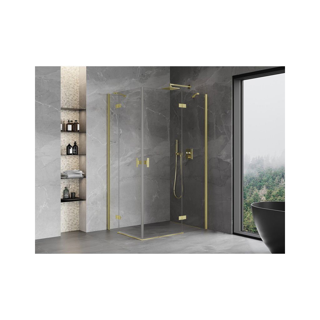 Mexen Mist-H Duo, 2-křídlý výklopný sprchový kout 70 x 85 cm, čiré sklo, zlatý matný profil, 8A5-070L-085P-55-00