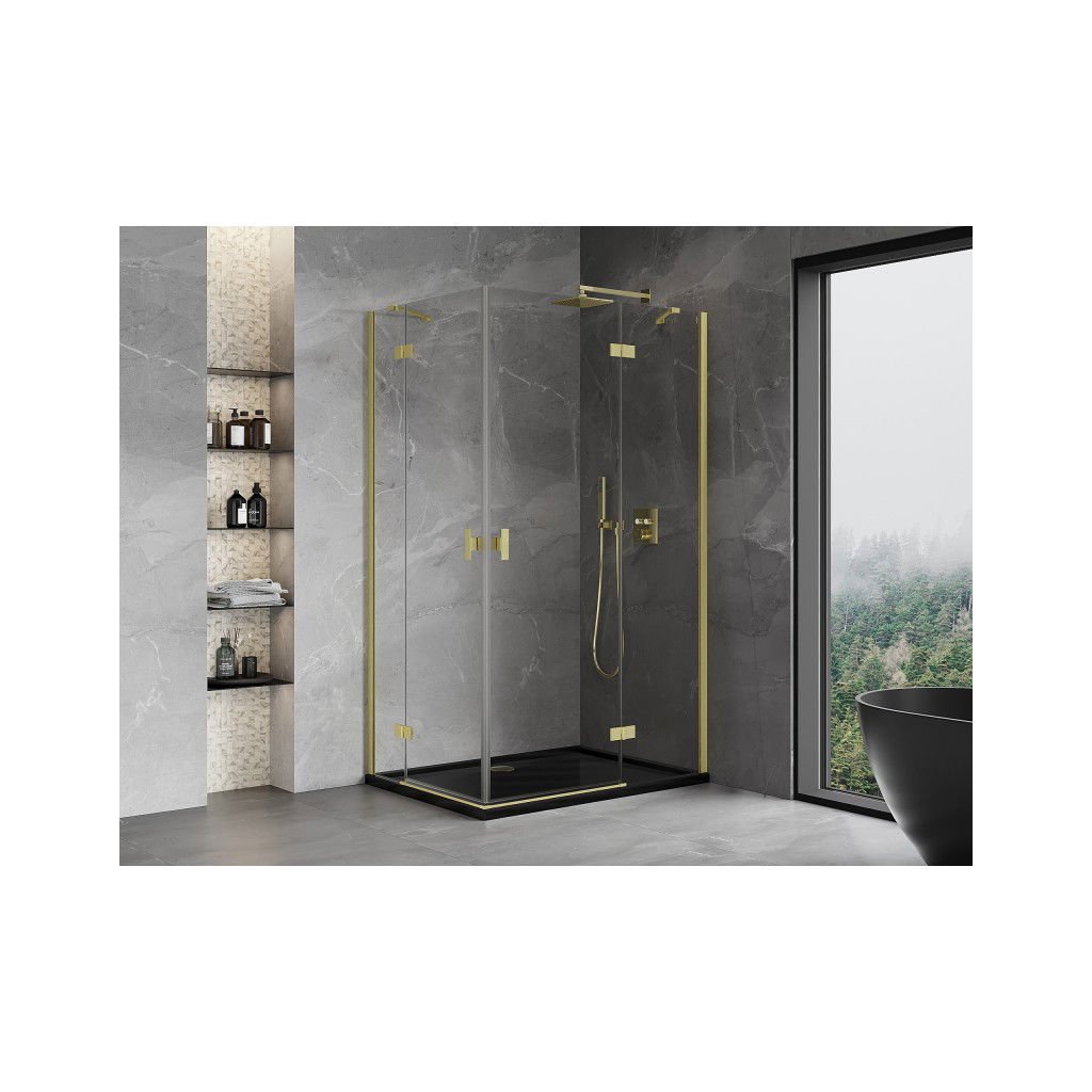 Mexen Mist-H Duo, 2-křídlý výklopný sprchový kout 80 x 105 cm, čiré sklo, zlatý matný profil, 8A5-080L-105P-55-00