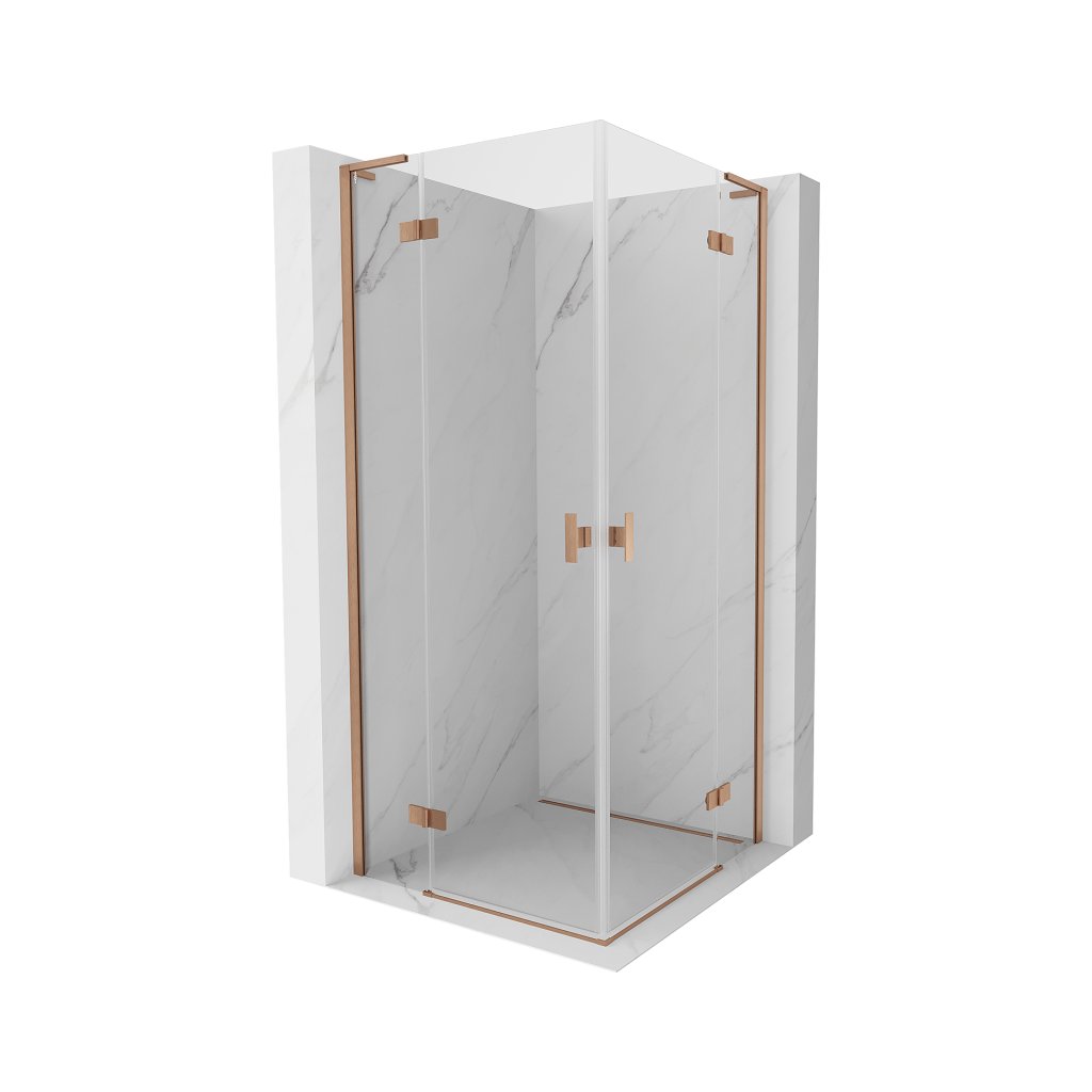 Mexen Mist-H L Duo, 2-křídlý sprchový kout 80 x 80 cm, čiré sklo, měděný matný profil, 8A5L-080L-080P-65-00