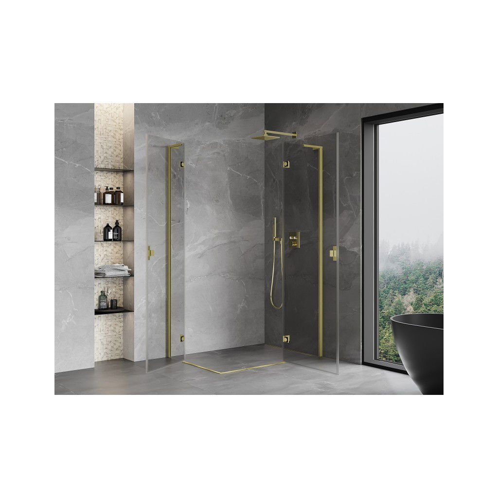 Mexen Mist-H L Duo, 2-křídlý sprchový kout 80 x 90 cm, čiré sklo, zlatý matný profil, 8A5L-080L-090P-55-00