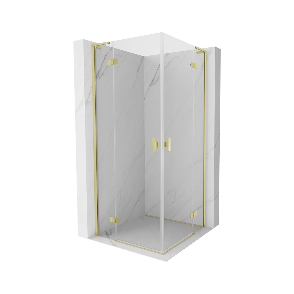 Mexen Mist-H L Duo, 2-křídlý sprchový kout 85 x 85 cm, čiré sklo, zlatý matný profil, 8A5L-085L-085P-55-00
