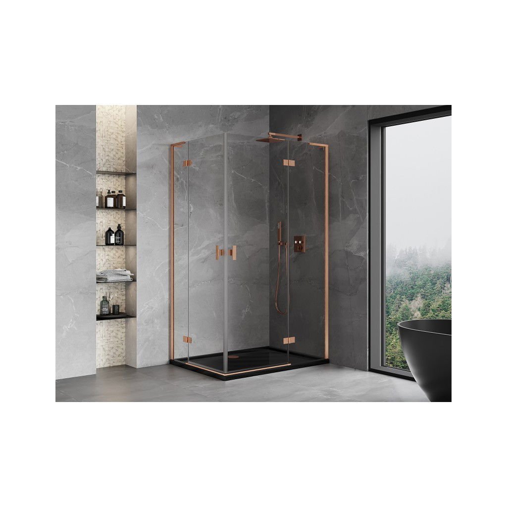 Mexen Mist-H L Duo, 2-křídlý sprchový kout 90 x 110 cm, čiré sklo, měděný matný profil, 8A5L-090L-110P-65-00