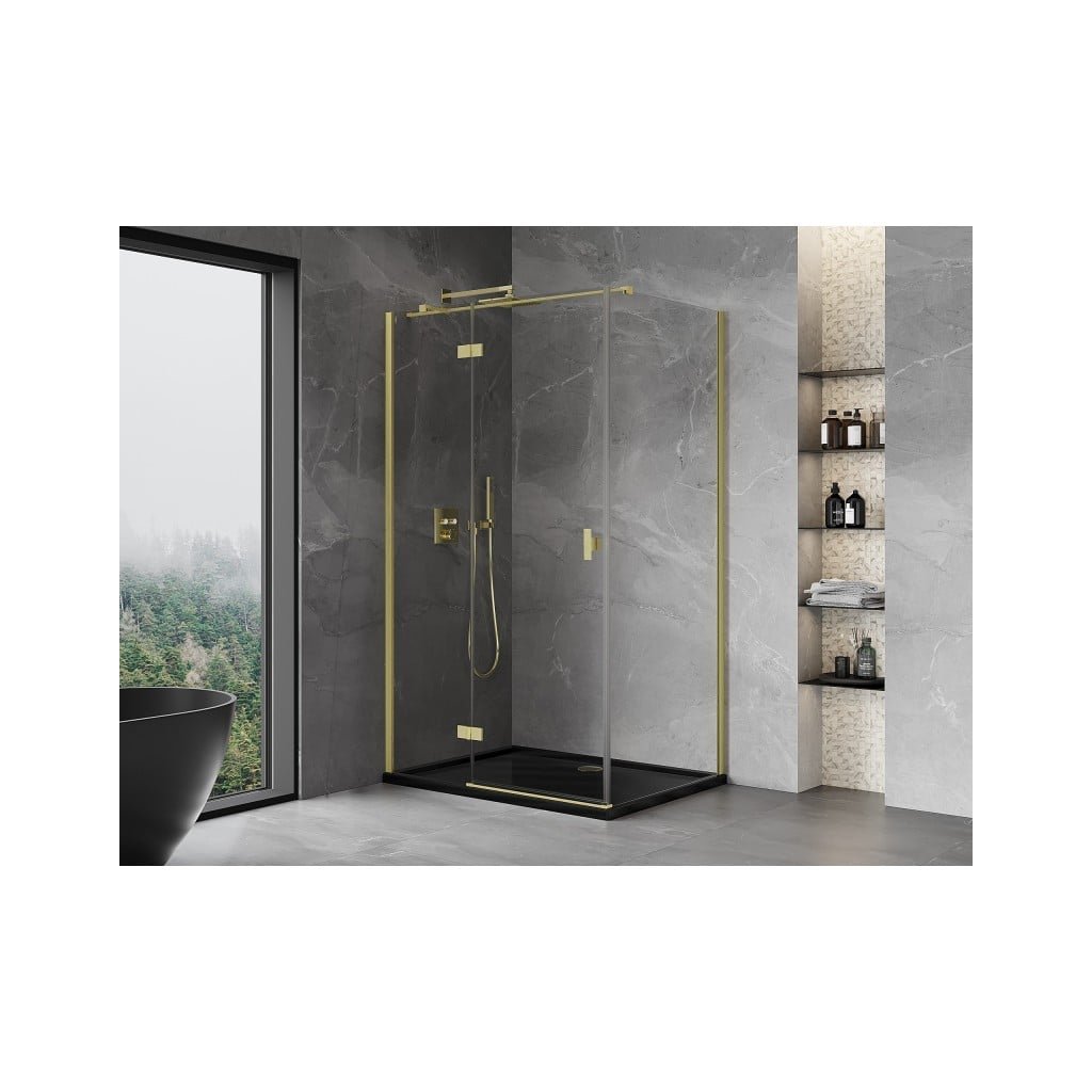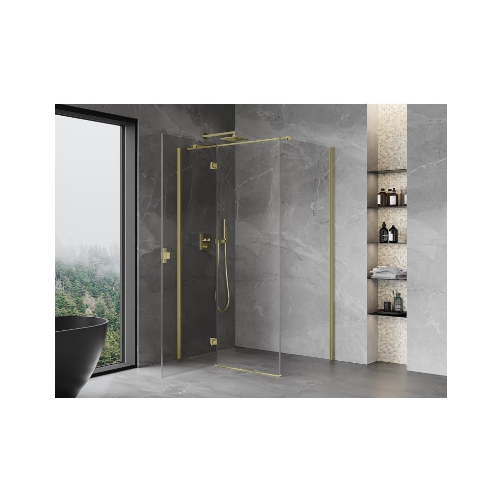 Mexen Mist HT, sprchový kout s výklopnými dveřmi levý 100 x 90 cm, čiré sklo, zlatá matná, 8A5T-100-090-55-00-L
