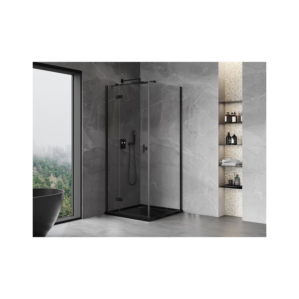 Mexen Mist HT, sprchový kout s výklopnými dveřmi levý 110 x 110 cm, čiré sklo, černý profil, 8A5T-110-110-70-00-L