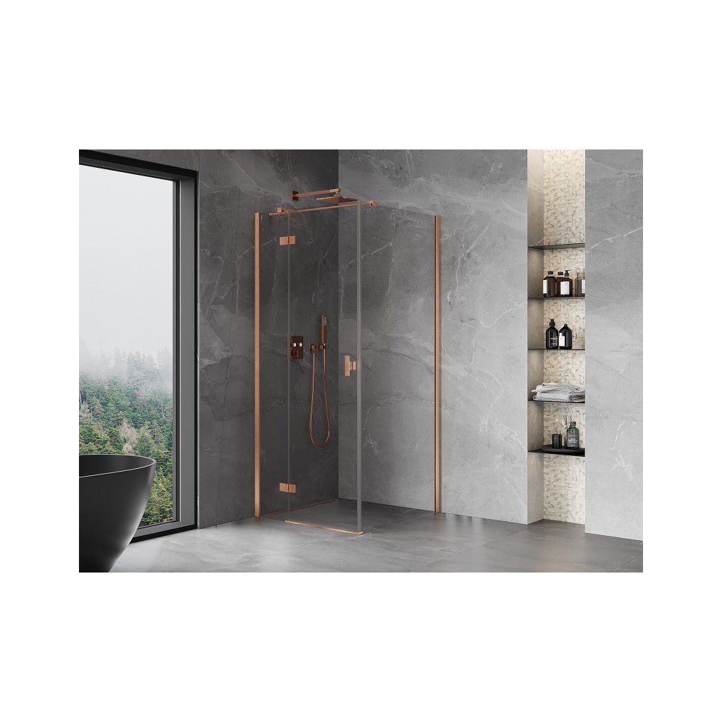 Mexen Mist HT, sprchový kout s výklopnými dveřmi levý 110 x 110 cm, čiré sklo, měděná matná, 8A5T-110-110-65-00-L