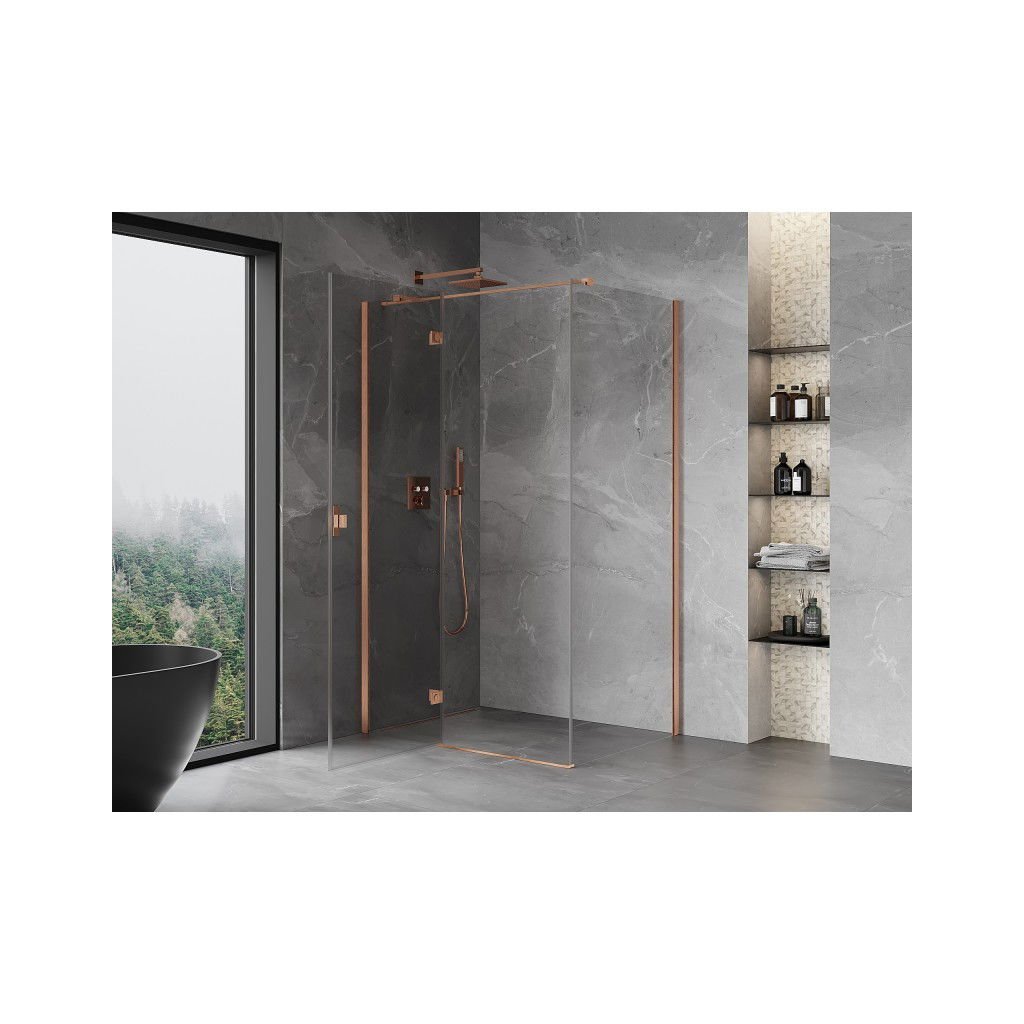 Mexen Mist HT, sprchový kout s výklopnými dveřmi levý 110 x 70 cm, čiré sklo, měděná matná, 8A5T-110-070-65-00-L