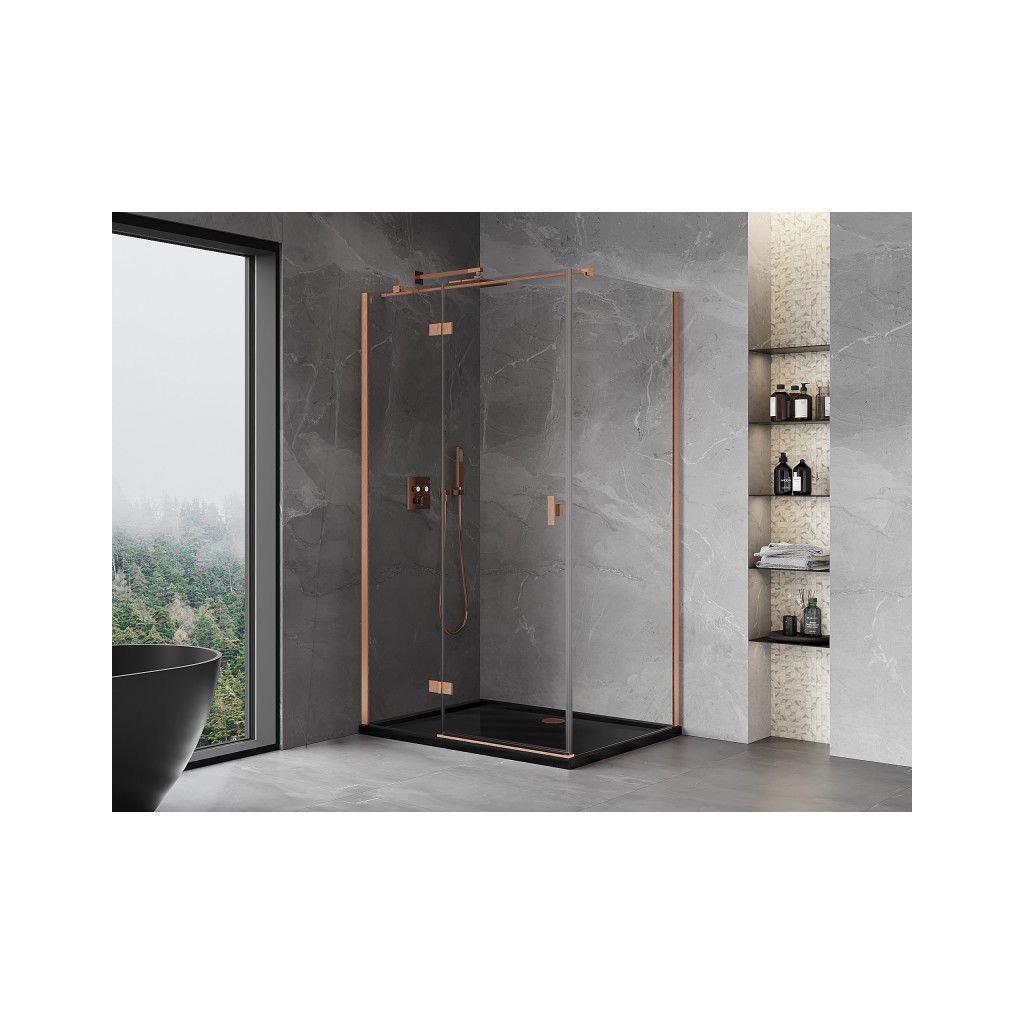 Mexen Mist HT, sprchový kout s výklopnými dveřmi levý 115 x 90 cm, čiré sklo, měděná matná, 8A5T-115-090-65-00-L