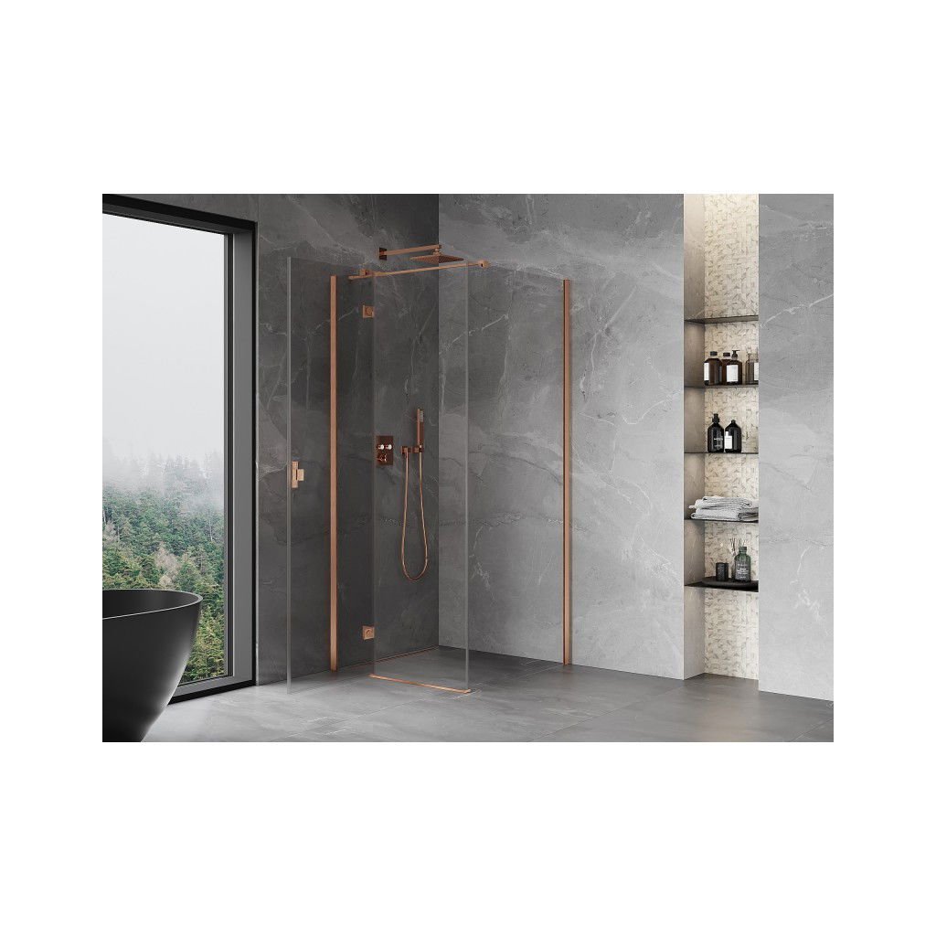 Mexen Mist HT, sprchový kout s výklopnými dveřmi levý 70 x 70 cm, čiré sklo, měděná matná, 8A5T-070-070-65-00-L