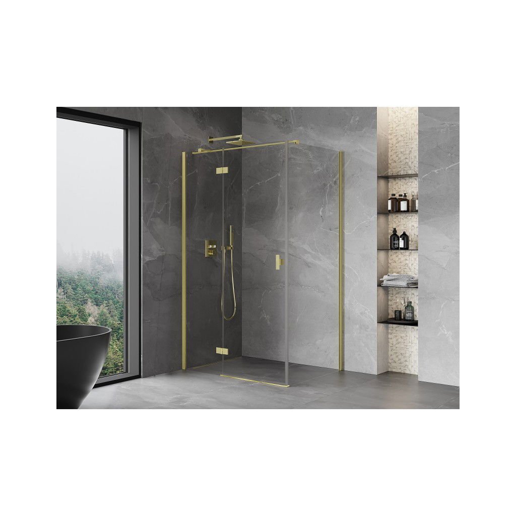 Mexen Mist HT, sprchový kout s výklopnými dveřmi levý 85 x 80 cm, čiré sklo, zlatá matná, 8A5T-085-080-55-00-L