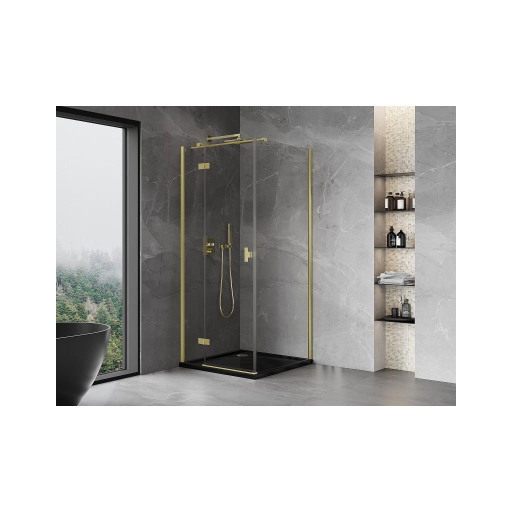 Mexen Mist HT, sprchový kout s výklopnými dveřmi levý 90 x 90 cm, čiré sklo, zlatá matná, 8A5T-090-090-55-00-L