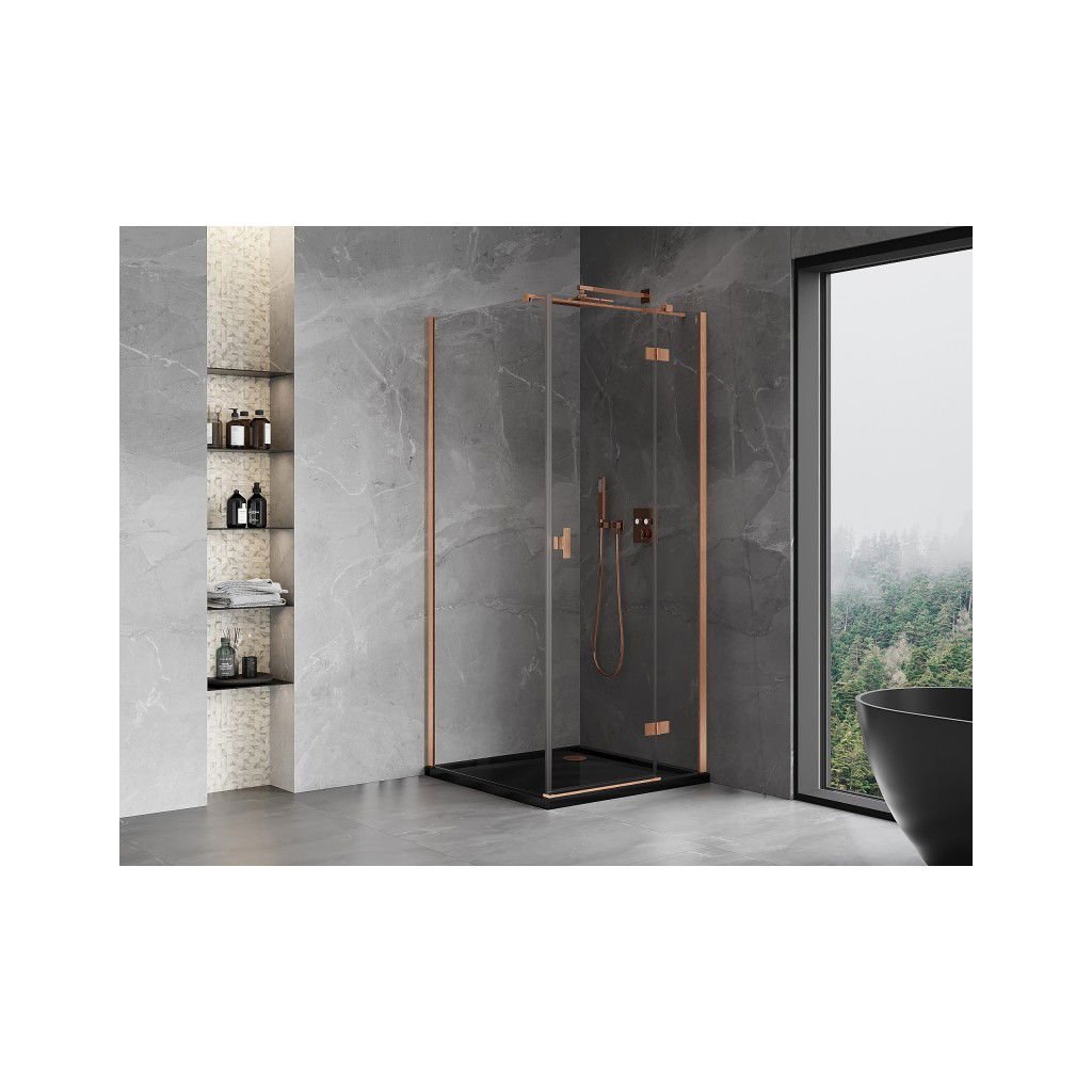 Mexen Mist HT, sprchový kout s výklopnými dveřmi pravý 75 x 75 cm, čiré sklo, měděná matná, 8A5T-075-075-65-00-P