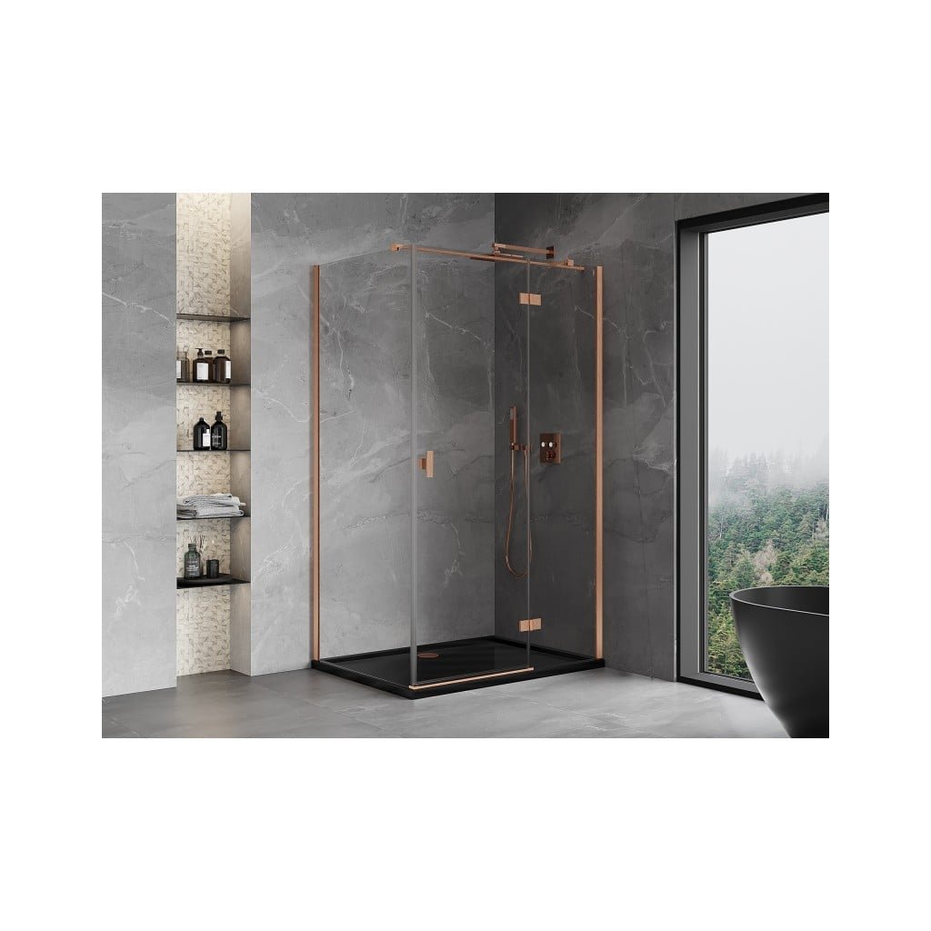 Mexen Mist HT, sprchový kout s výklopnými dveřmi pravý 80 x 90 cm, čiré sklo, měděná matná, 8A5T-080-090-65-00-P
