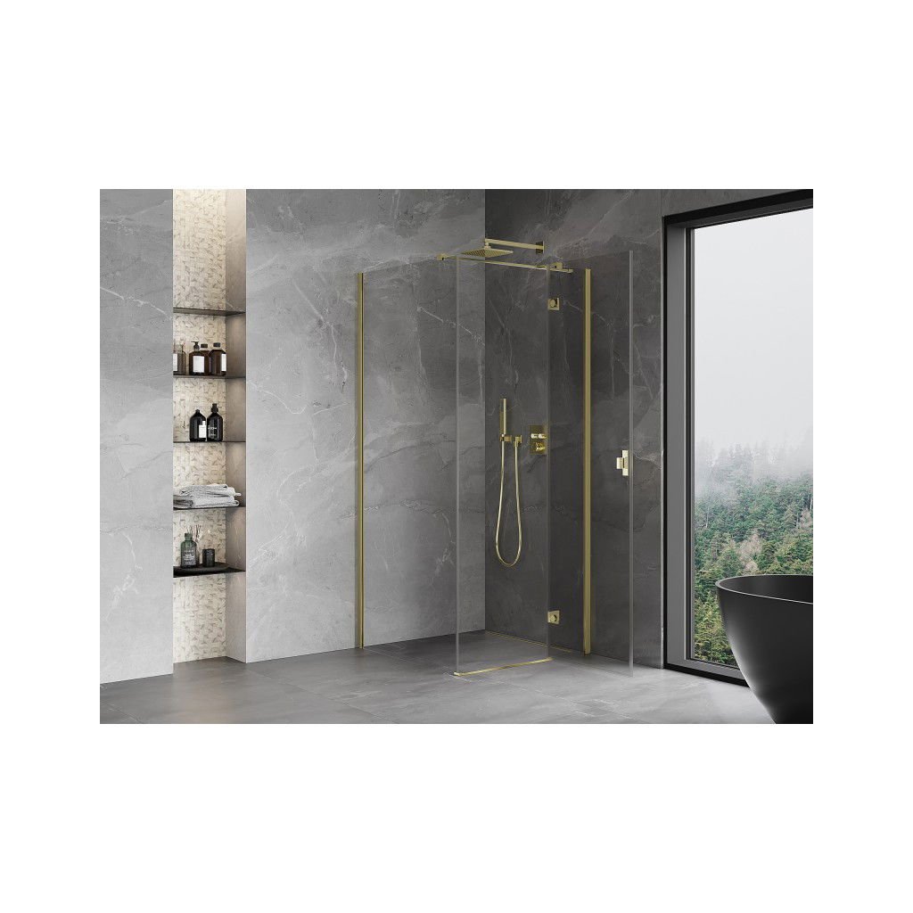 Mexen Mist HT, sprchový kout s výklopnými dveřmi pravý 90 x 90 cm, čiré sklo, zlatá, 8A5T-090-090-50-00-P