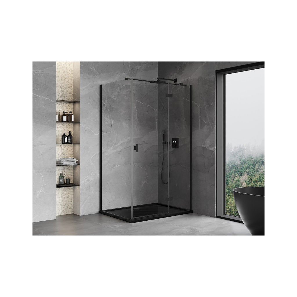 Mexen Mist HT, sprchový kout s výklopnými dveřmi pravý 95 x 100 cm, čiré sklo, černý profil, 8A5T-095-100-70-00-P