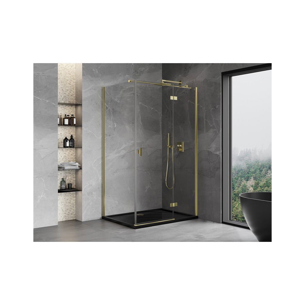 Mexen Mist HT, sprchový kout s výklopnými dveřmi pravý 95 x 110 cm, čiré sklo, zlatá, 8A5T-095-110-50-00-P