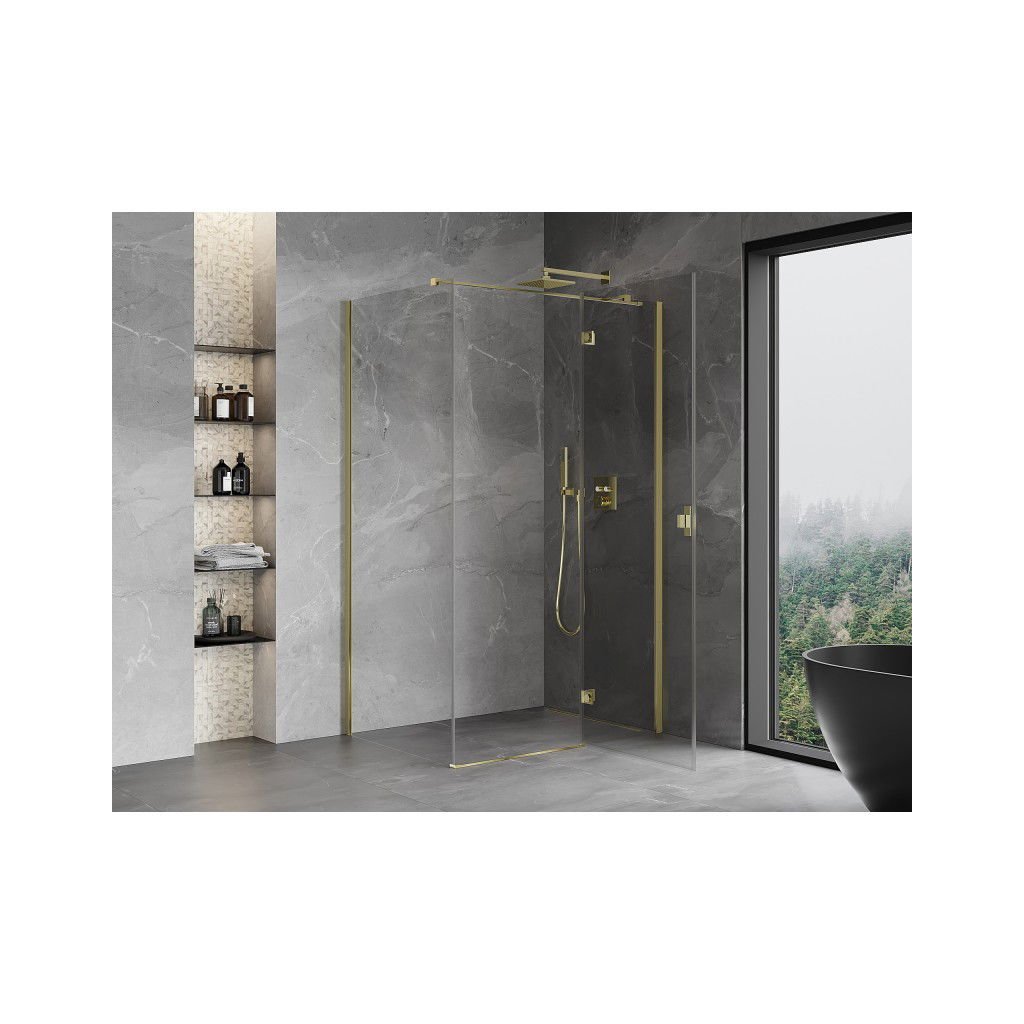 Mexen Mist HT, sprchový kout s výklopnými dveřmi pravý 95 x 80 cm, čiré sklo, zlatá, 8A5T-095-080-50-00-P
