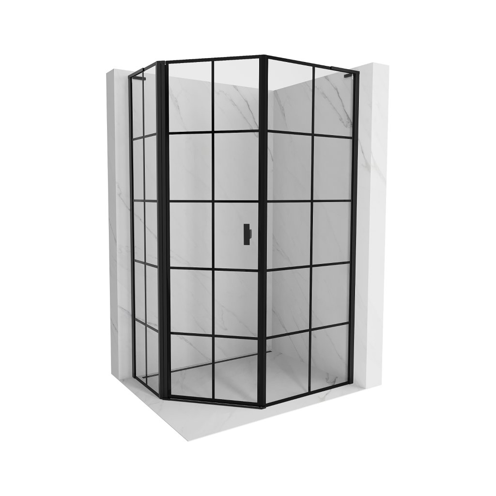 Mexen Mist L, pětiúhelníkový výklopný sprchový kout, levý, 80 x 90 cm, čiré sklo-černá mřížka, 8A8L-080-090-70-77-L