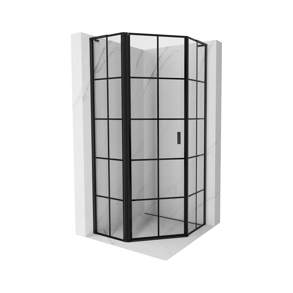 Mexen Mist L, pětiúhelníkový výklopný sprchový kout, levý, 90 x 90 cm, čiré sklo-černá mřížka, 8A8L-090-090-70-77-L