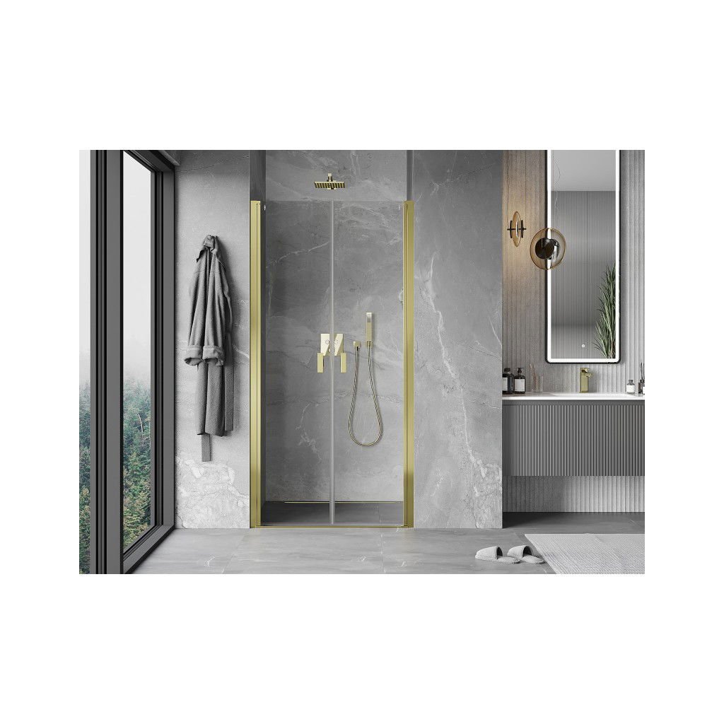 Mexen MIST otevírací sprchové dveře (d+d) 100x200 cm 6mm zlaté, průhledné, 8A7-100-000-50-00