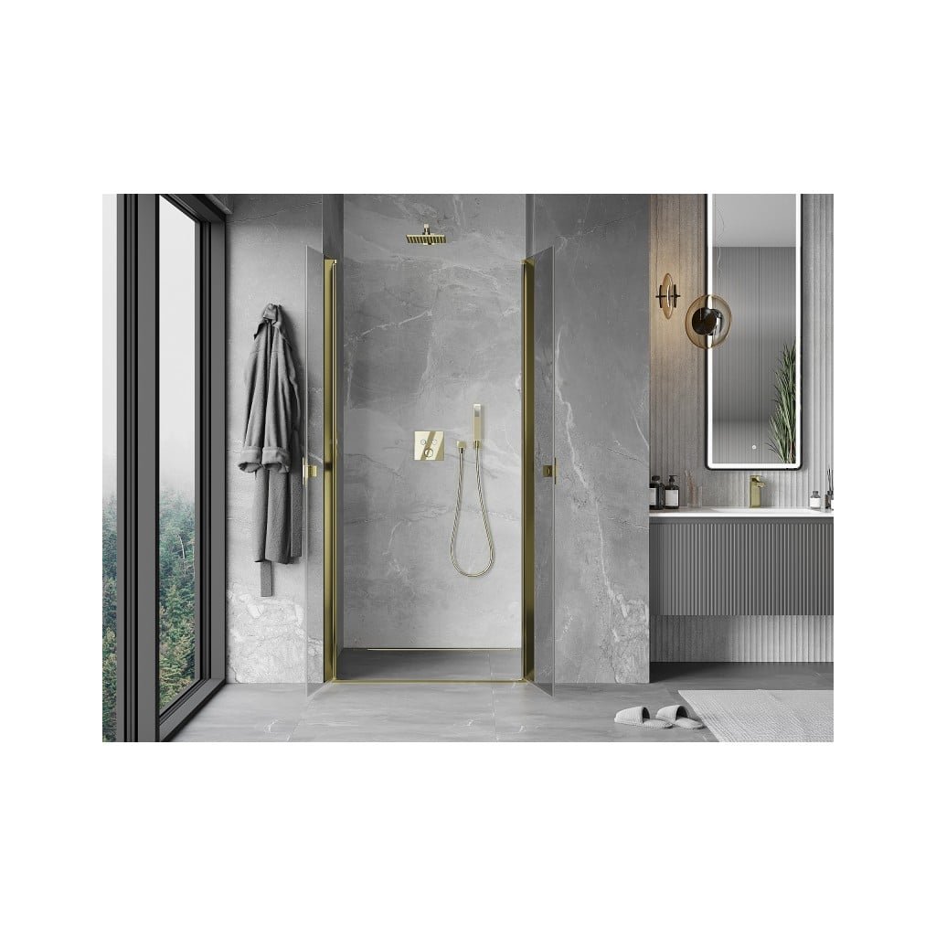 Mexen MIST otevírací sprchové dveře (d+d) 75x200 cm 6mm zlaté, průhledné, 8A7-075-000-50-00