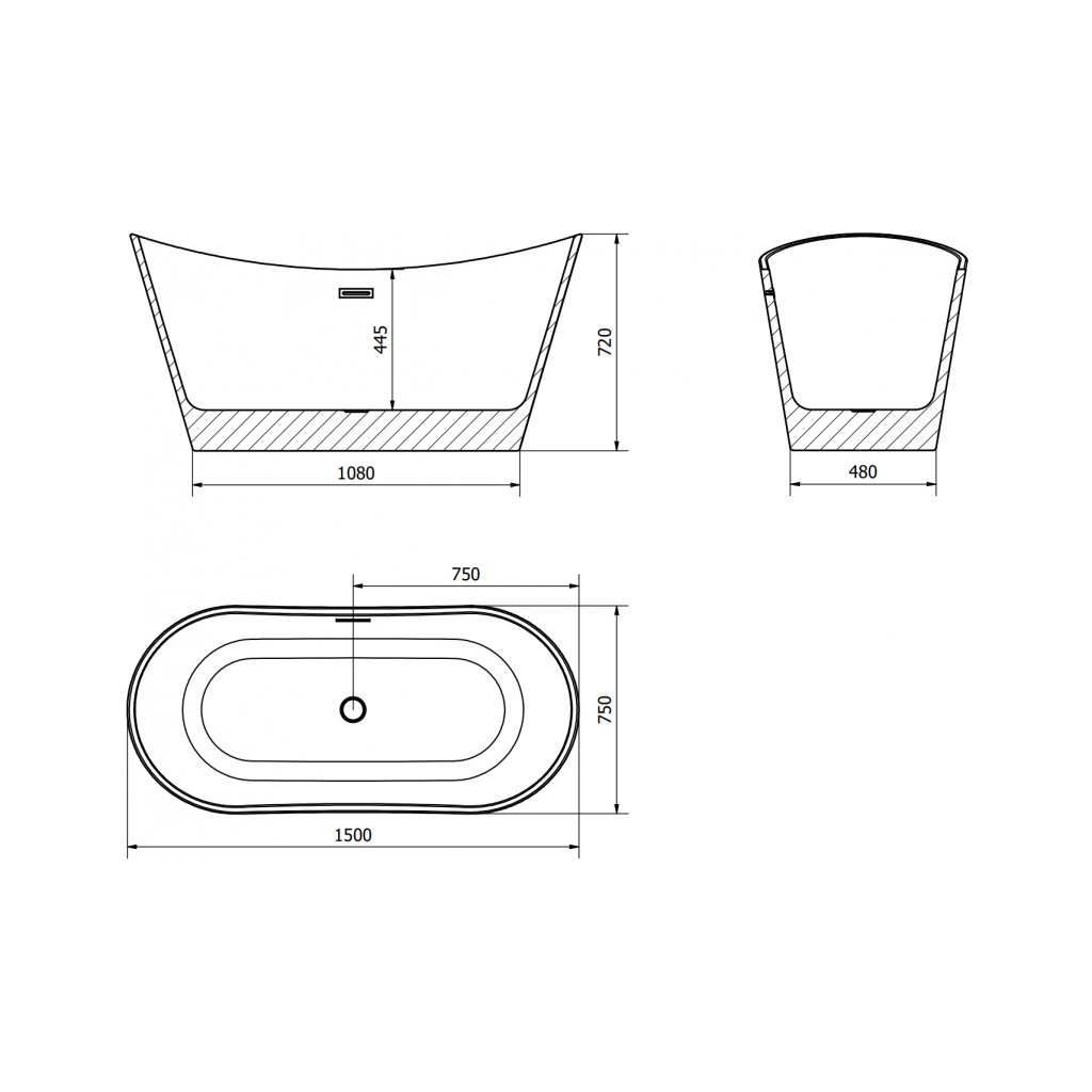 Mexen Montana, volně stojící vana 150 x 75 cm, bílá, chromový přepad, 52011507500-01