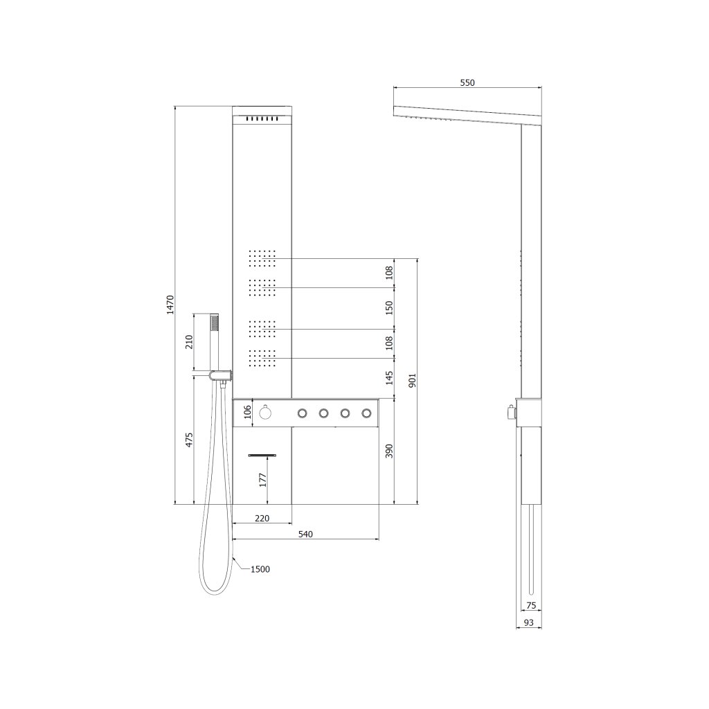 Mexen Natan, sprchový panel s výlevkou h-1440, chromová, 7626-04-00