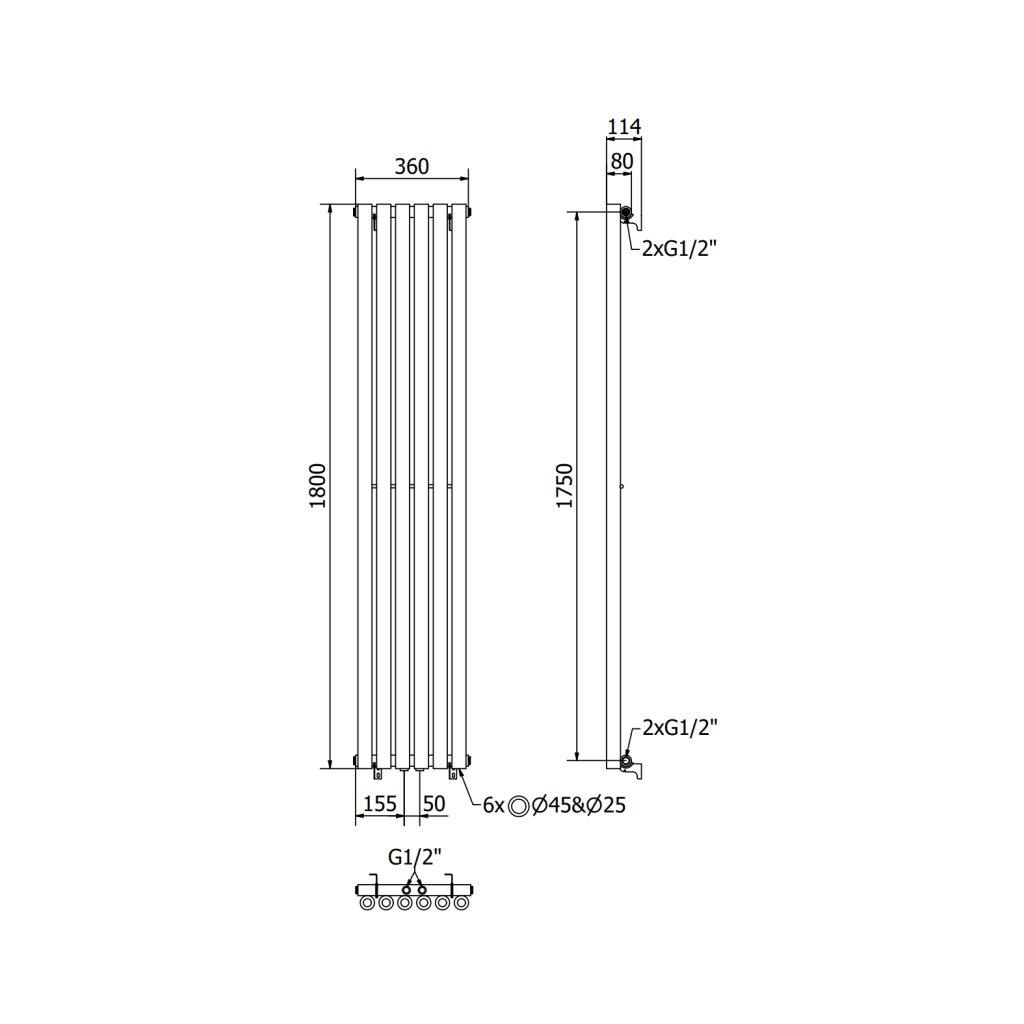 - 4xG 1/2" nahoru a dolů vpravo nebo vlevo - Možnost montáže topné tyče