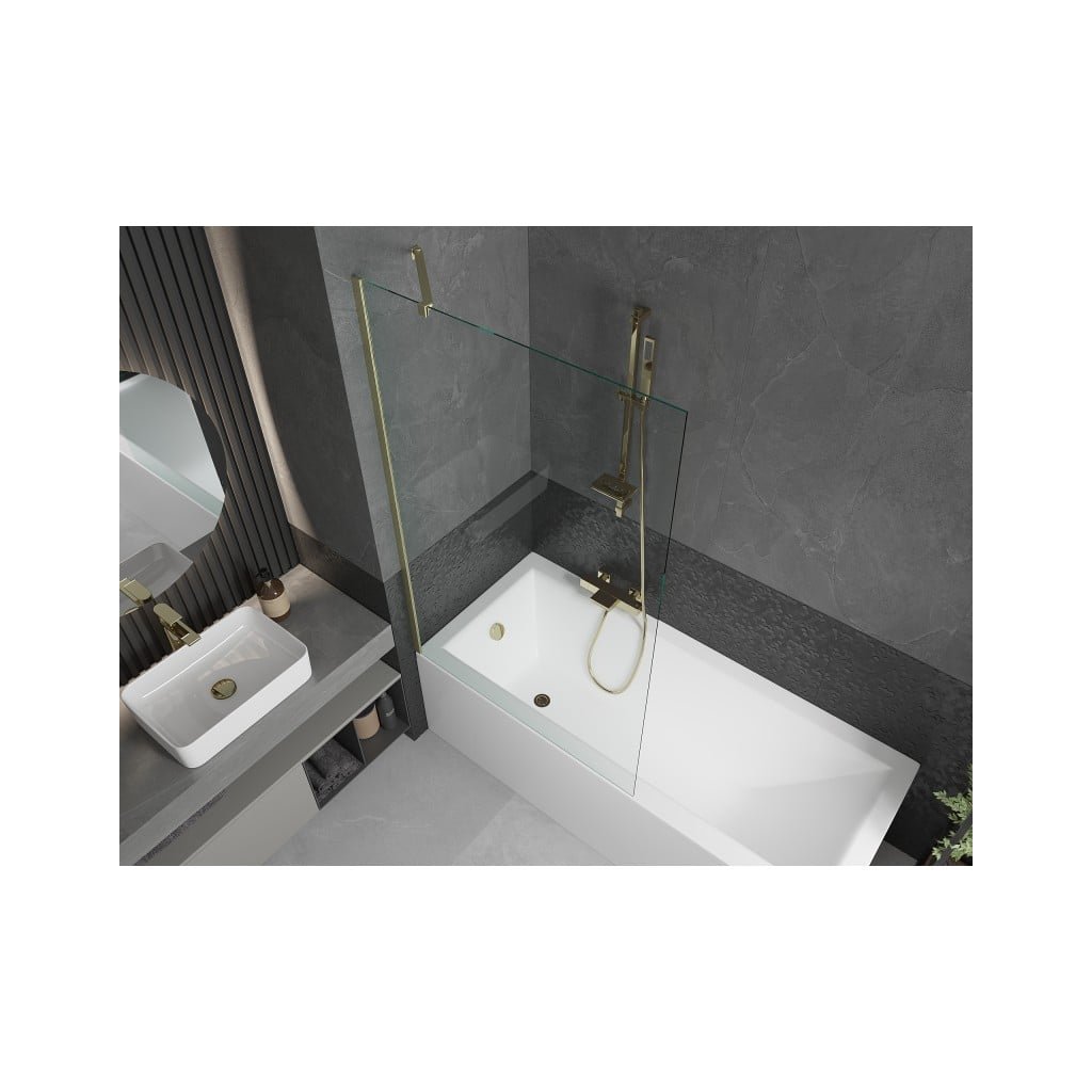 Mexen Next, 1-křídlová vanová zástěna 100 x 150 cm, 6mm čiré sklo, zlatá matná, 895-100-000-00-00-55