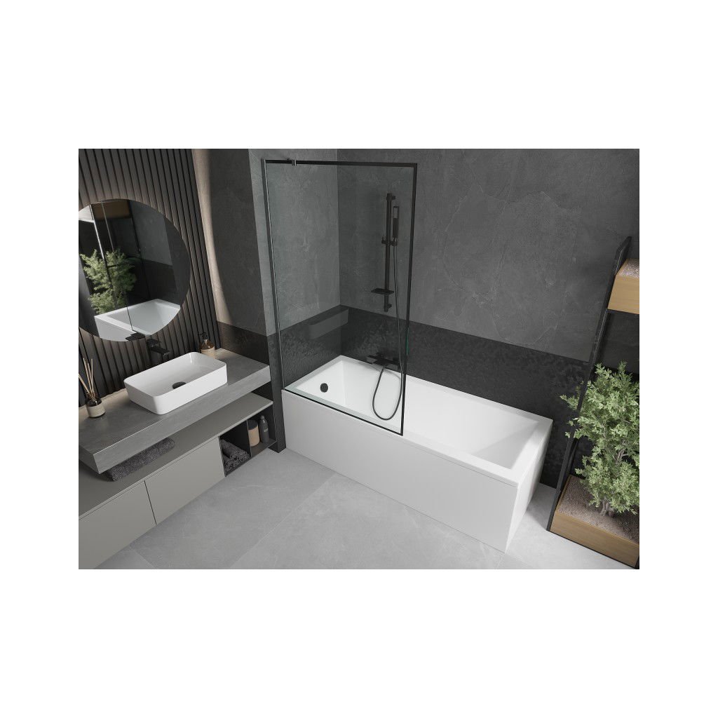 Mexen Next, 1-křídlová vanová zástěna 100 x 150 cm, 6mm čiré sklo - černý vzor, broušená grafitová, 895-100-000-00-70-66