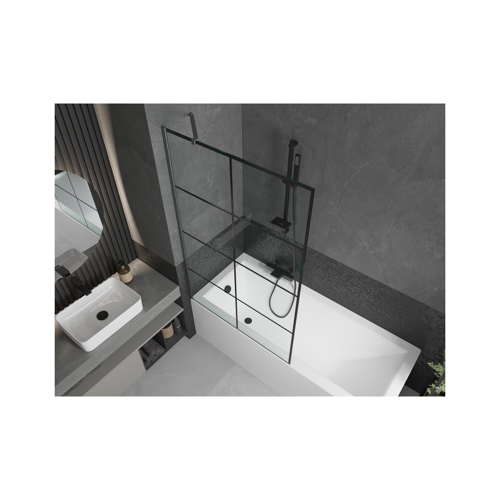 Mexen Next, 1-křídlová vanová zástěna 100 x 150 cm, 6mm čiré sklo - černý vzor, broušený grafit, 895-100-000-00-77-66