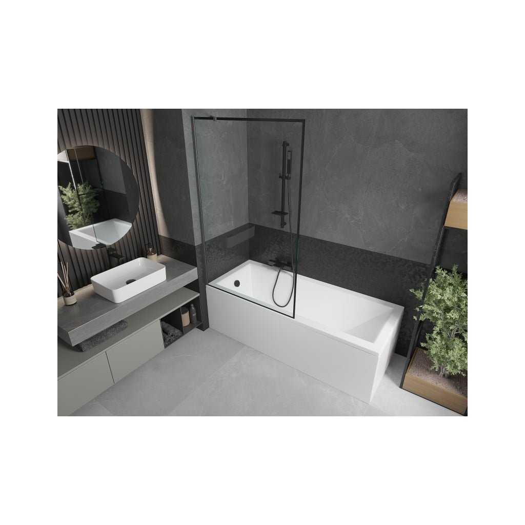 Mexen Next, 1-křídlová vanová zástěna 100 x 150 cm, 6mm čiré sklo - černý vzor, grafitová, 895-100-000-00-70-95