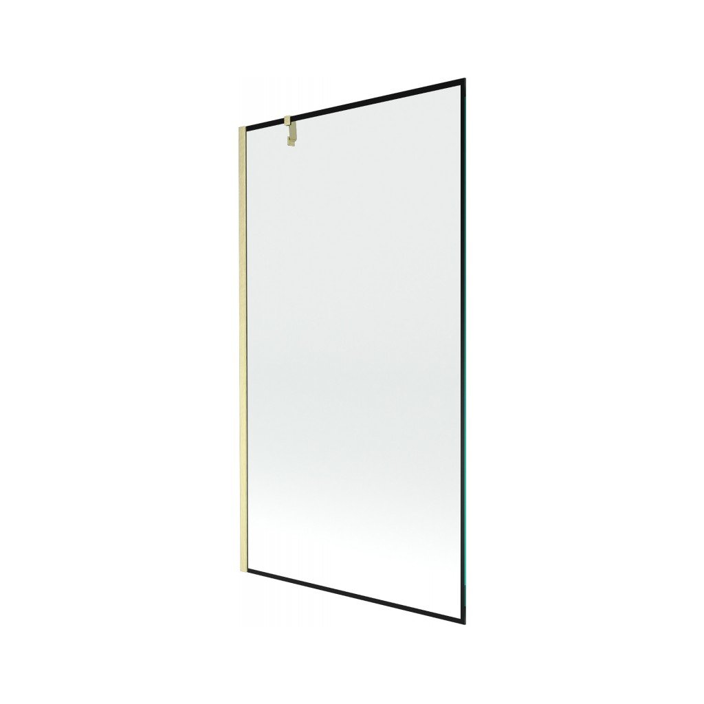 Mexen Next, 1-křídlová vanová zástěna 100 x 150 cm, 6mm čiré sklo - černý vzor, zlatá matná, 895-100-000-00-70-55