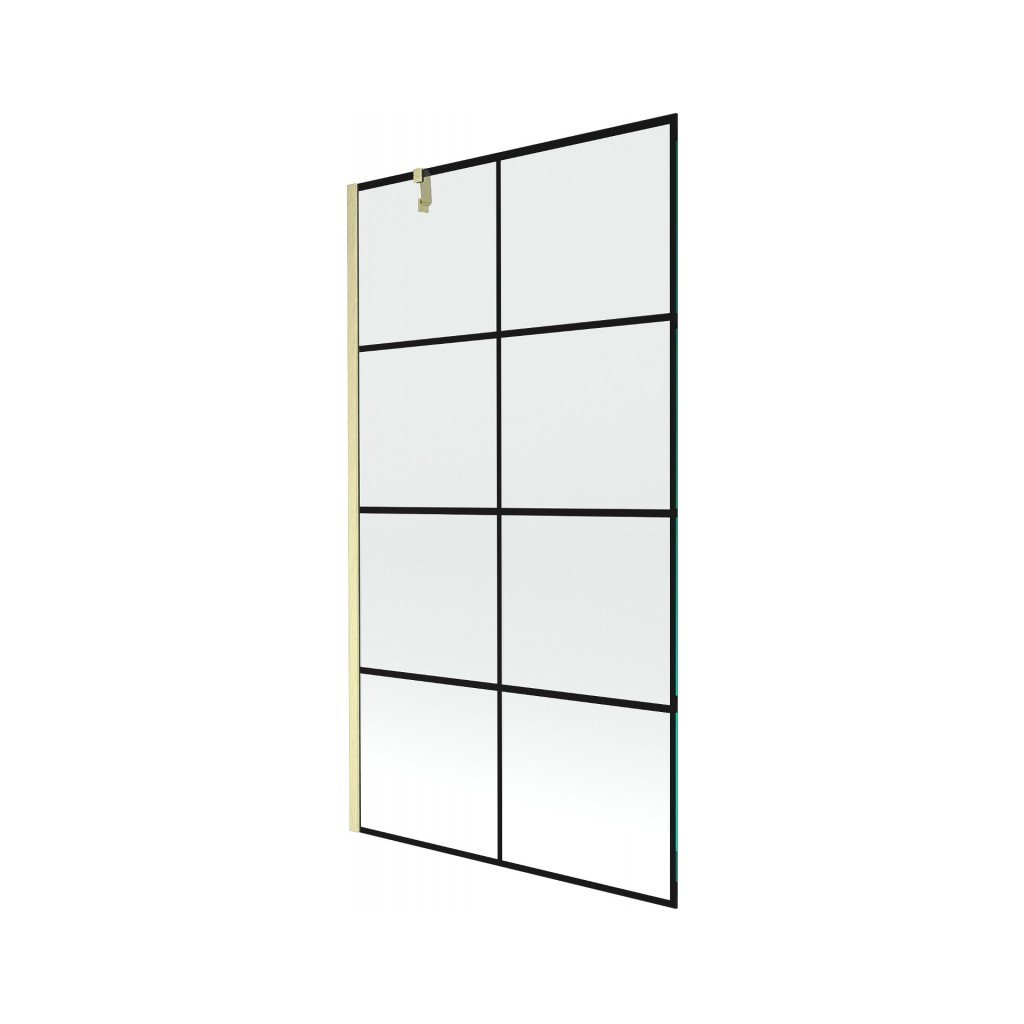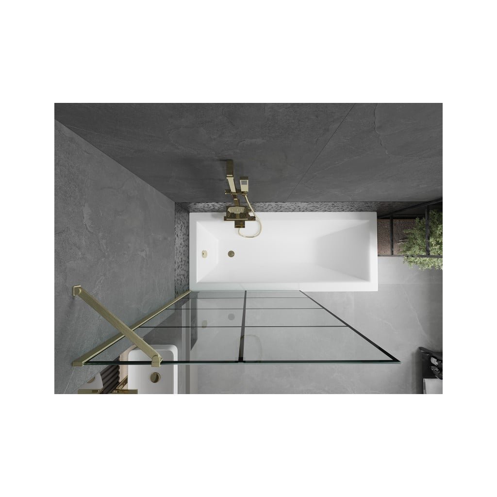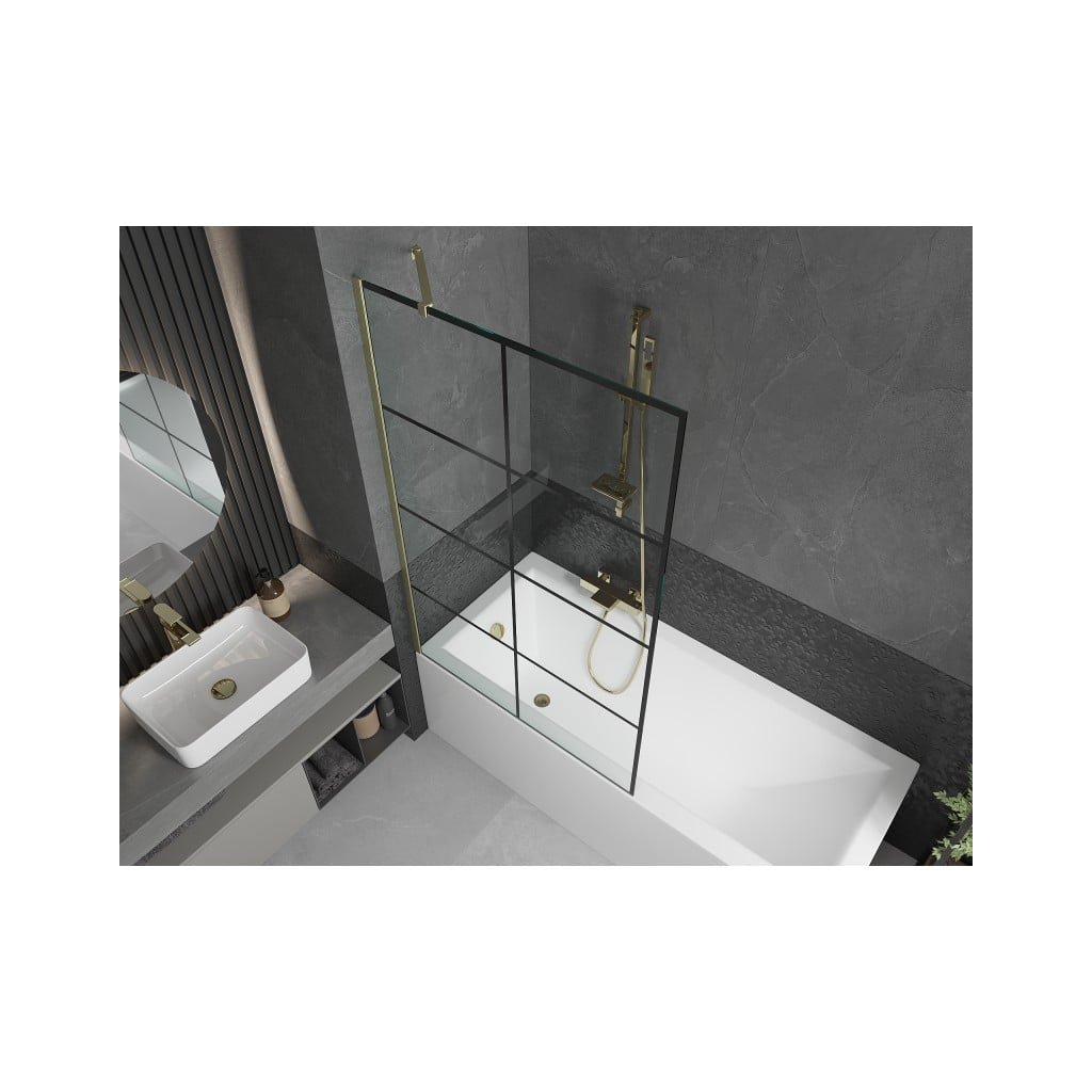 Mexen Next, 1-křídlová vanová zástěna 100 x 150 cm, 6mm čiré sklo - černý vzor, zlatá matná, 895-100-000-00-77-55