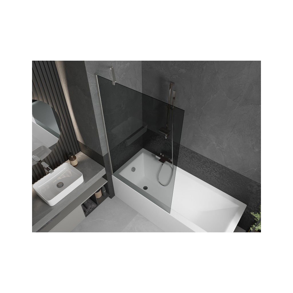 Mexen Next, 1-křídlová vanová zástěna 100 x 150 cm, 6mm šedé sklo, ocelová, 895-100-000-00-40-97