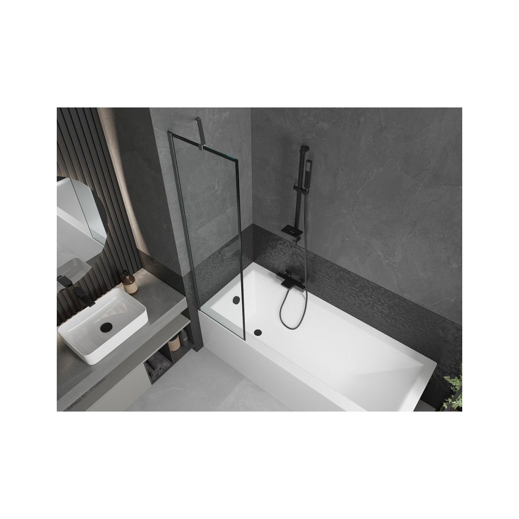 Mexen Next, 1-křídlová vanová zástěna 50 x 150 cm, 6mm čiré sklo - černý vzor, broušená grafitová, 895-050-000-00-70-66