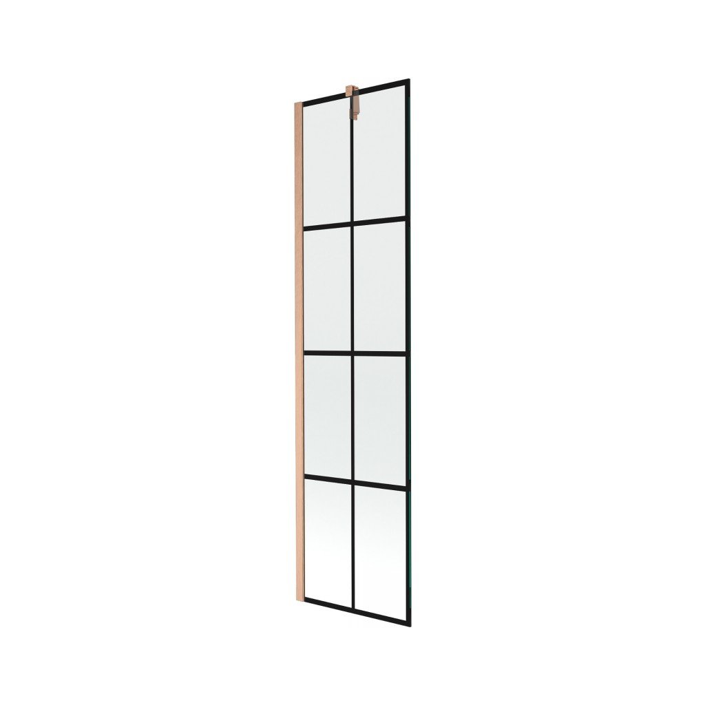 Mexen Next, 1-křídlová vanová zástěna 50 x 150 cm, 6mm čiré sklo - černý vzor, měděná matná, 895-050-000-00-70-77