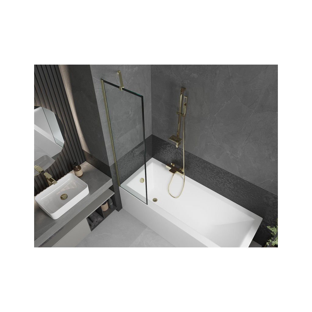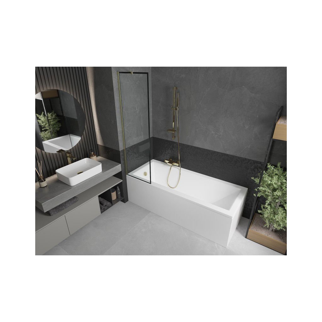 Mexen Next, 1-křídlová vanová zástěna 50 x 150 cm, 6mm čiré sklo - černý vzor, zlatá matná, 895-050-000-00-70-55