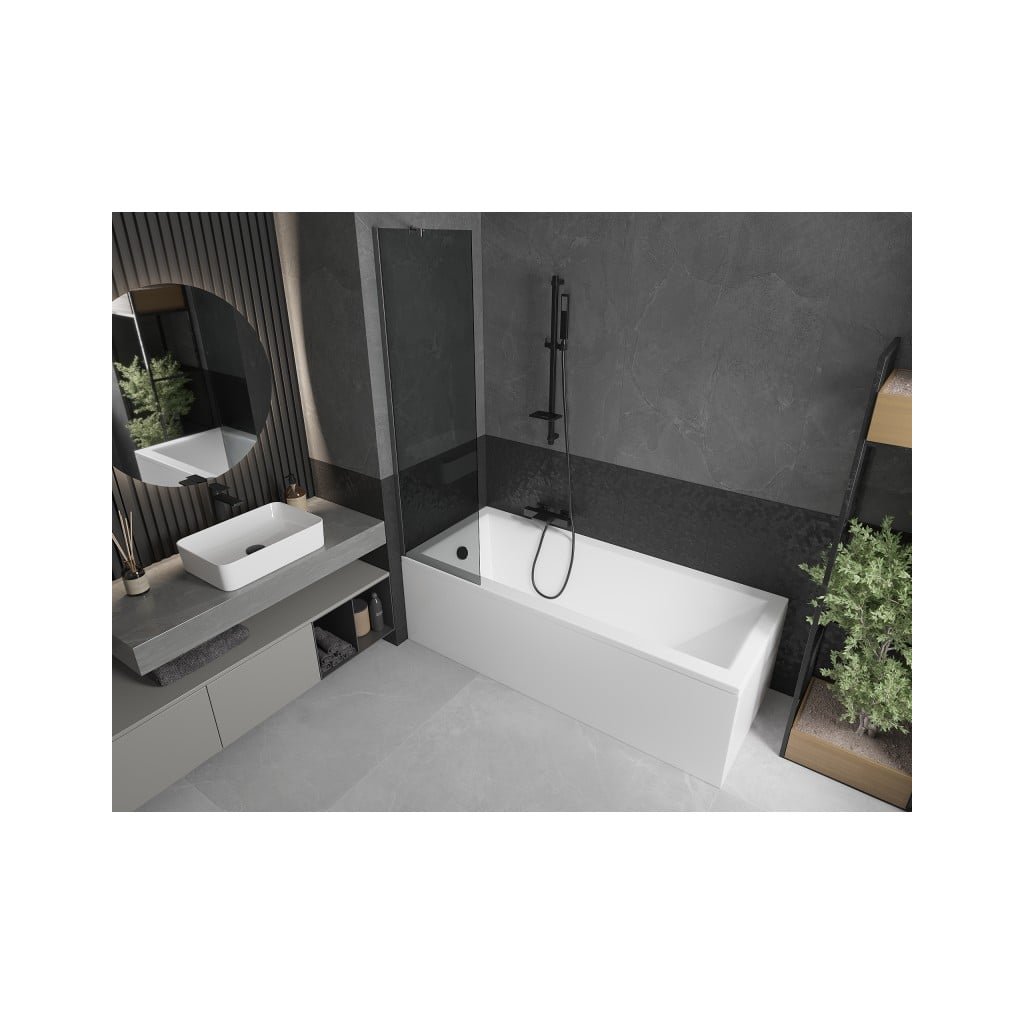 Mexen Next, 1-křídlová vanová zástěna 50 x 150 cm, 6mm šedé sklo, broušená grafitová, 895-050-000-00-40-66