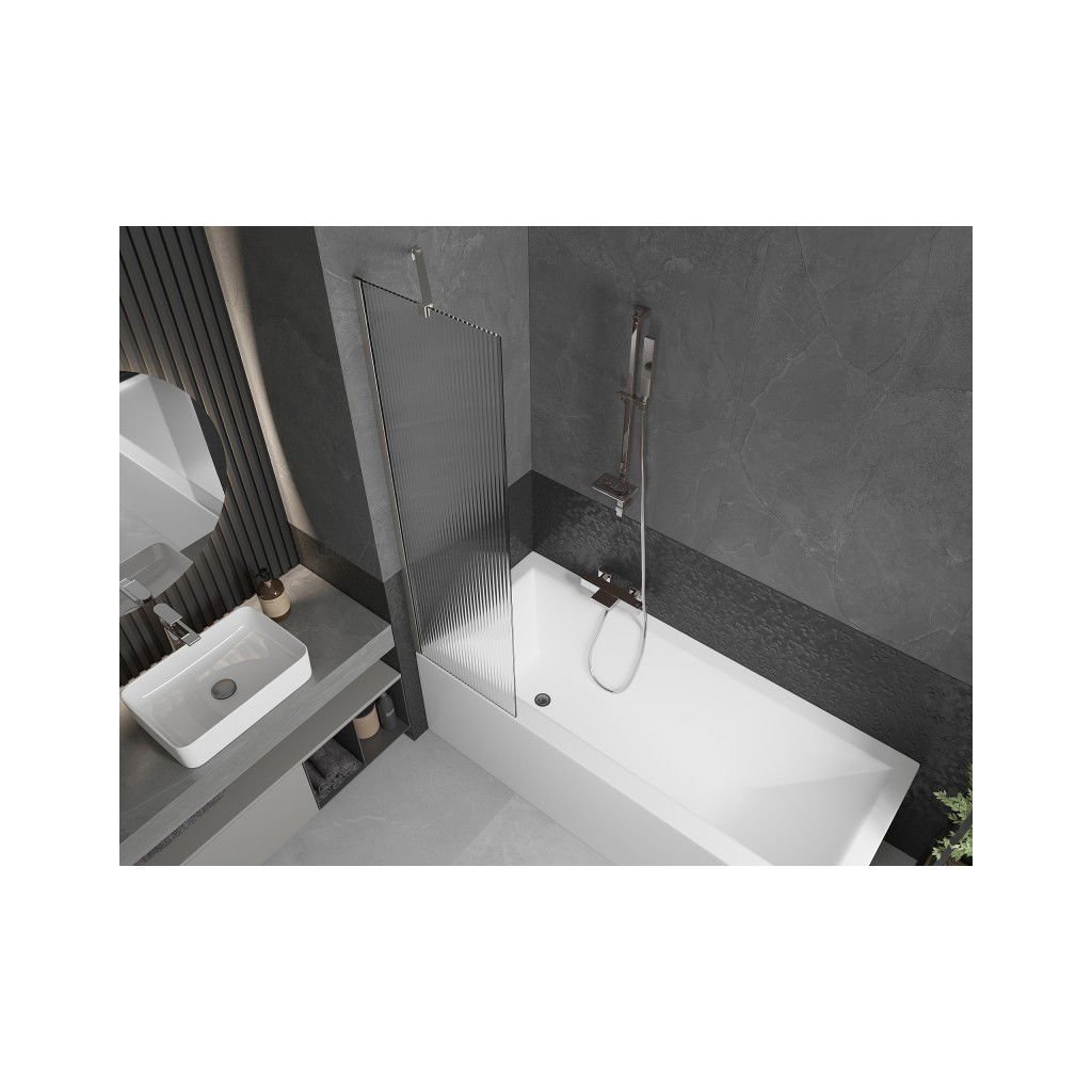 Mexen Next, 1-křídlová vanová zástěna 50 x 150 cm, 6mm sklo Ribs, ocelová, 895-050-000-00-09-97