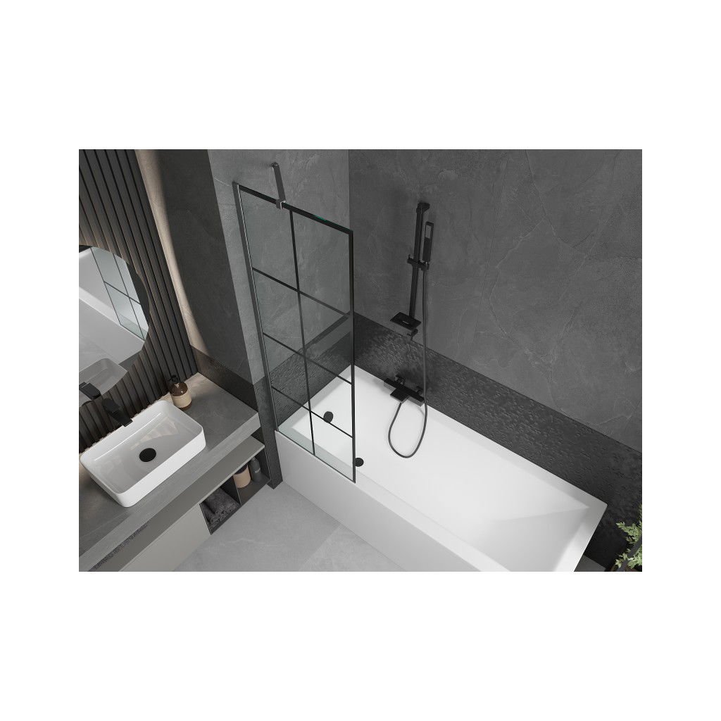 Mexen Next, 1-křídlová vanová zástěna 60 x 150 cm, 6mm čiré sklo - černý vzor, broušený grafit, 895-060-000-00-77-66