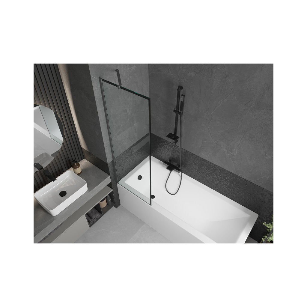 Mexen Next, 1-křídlová vanová zástěna 60 x 150 cm, 6mm čiré sklo - černý vzor, grafitová, 895-060-000-00-70-95