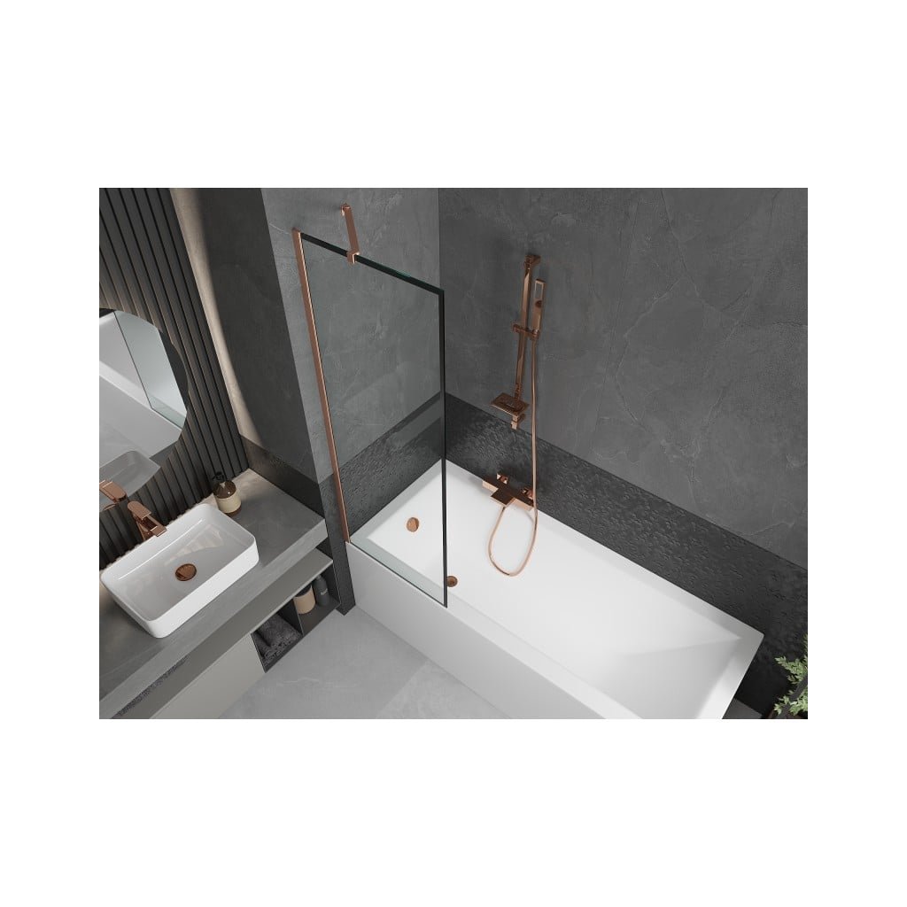 Mexen Next, 1-křídlová vanová zástěna 60 x 150 cm, 6mm čiré sklo - černý vzor, měděná matná, 895-060-000-00-70-65