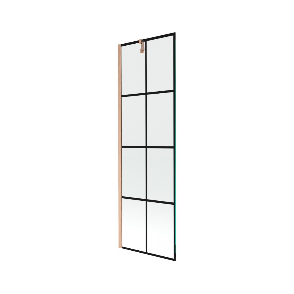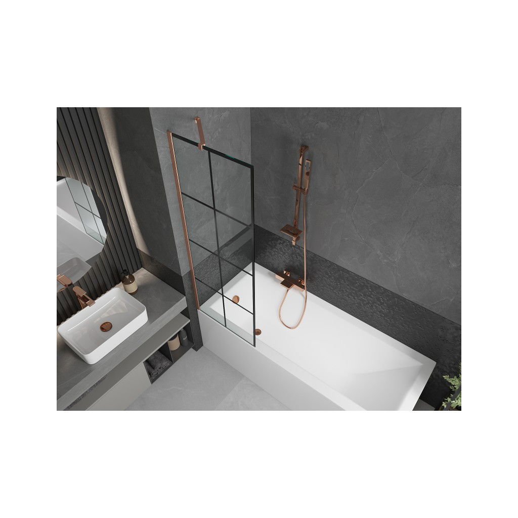 Mexen Next, 1-křídlová vanová zástěna 60 x 150 cm, 6mm čiré sklo - černý vzor, měděná matná, 895-060-000-00-70-77