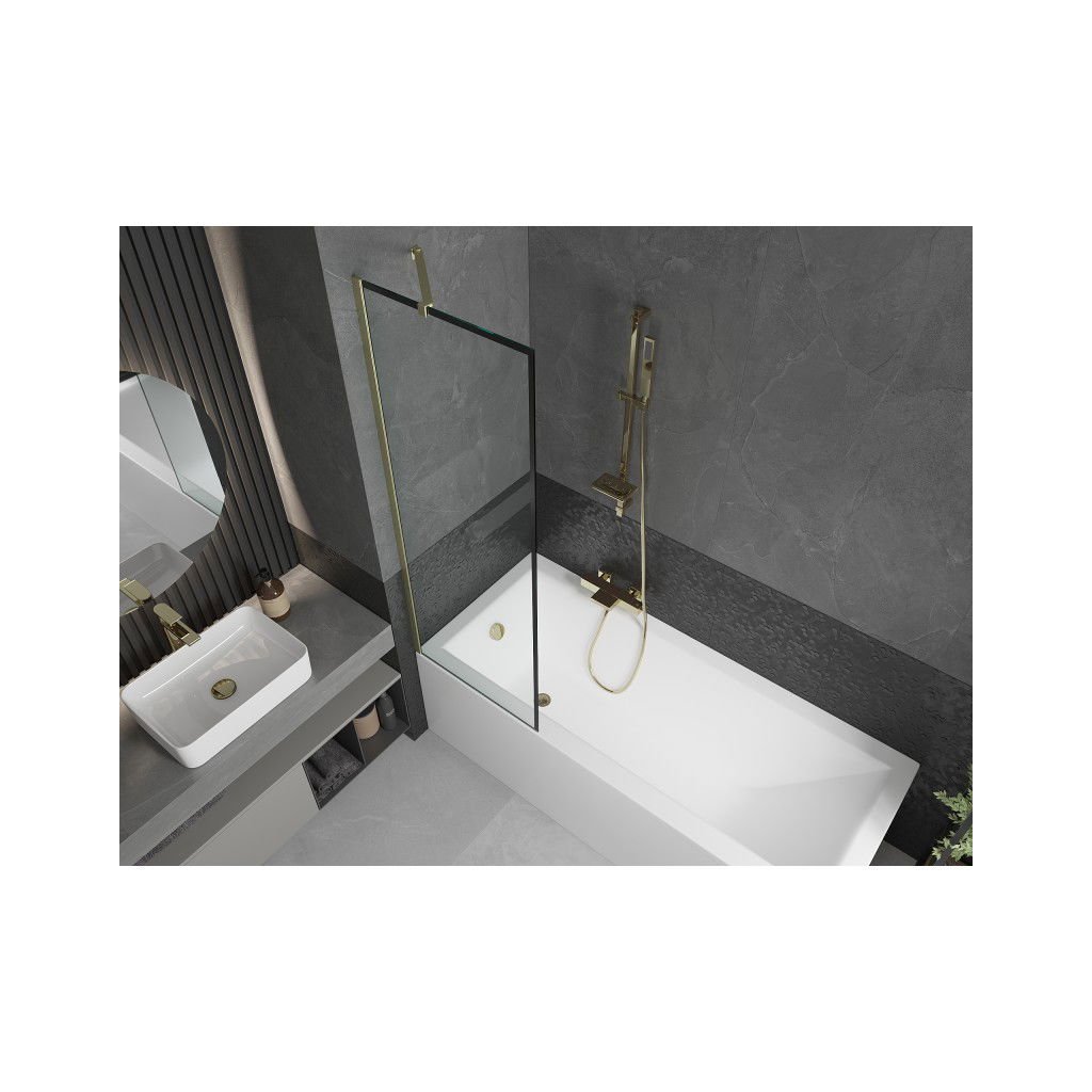 Mexen Next, 1-křídlová vanová zástěna 60 x 150 cm, 6mm čiré sklo - černý vzor, zlatá matná, 895-060-000-00-70-55