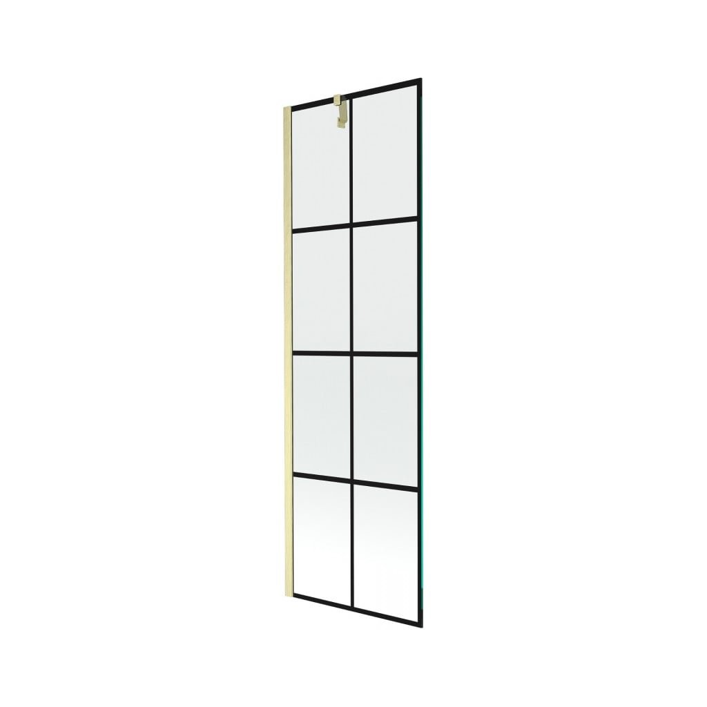 Mexen Next, 1-křídlová vanová zástěna 60 x 150 cm, 6mm čiré sklo - černý vzor, zlatá matná, 895-060-000-00-77-55