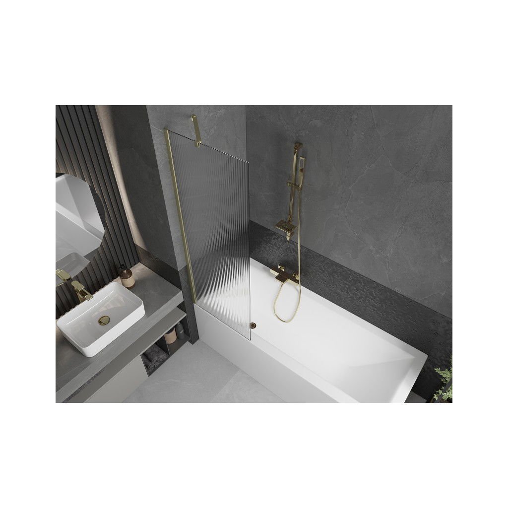 Mexen Next, 1-křídlová vanová zástěna 60 x 150 cm, 6mm sklo Ribs, zlatá matná, 895-060-000-00-09-55