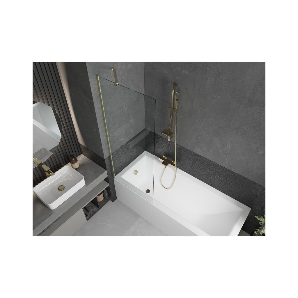 Mexen Next, 1-křídlová vanová zástěna 70 x 150 cm, 6mm čiré sklo, zlatá matná, 895-070-000-00-00-55