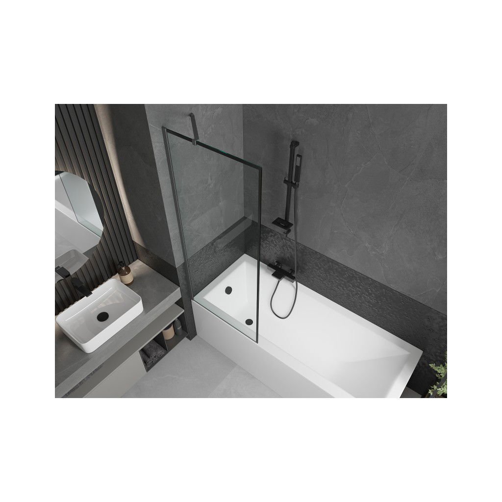 Mexen Next, 1-křídlová vanová zástěna 70 x 150 cm, 6mm čiré sklo - černý vzor, grafitová, 895-070-000-00-70-95