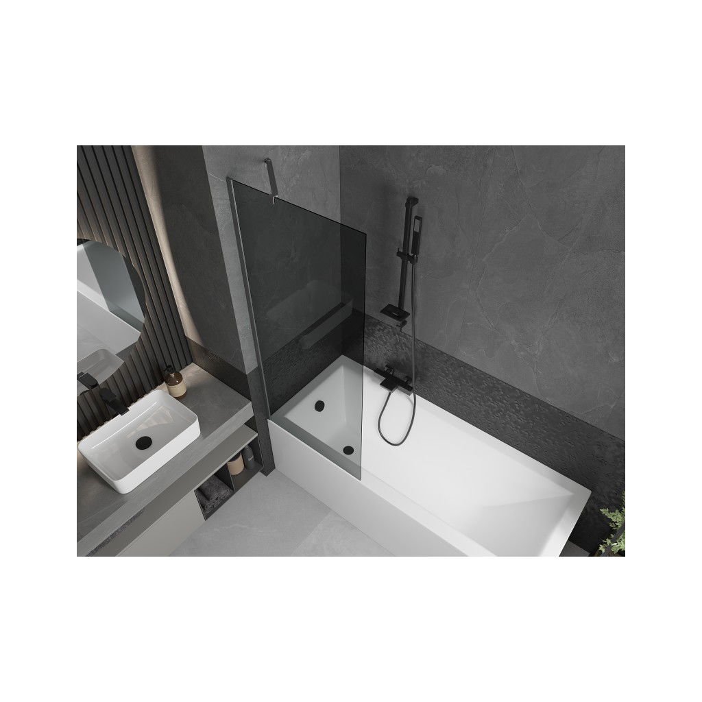 Mexen Next, 1-křídlová vanová zástěna 70 x 150 cm, 6mm šedé sklo, broušená grafitová, 895-070-000-00-40-66