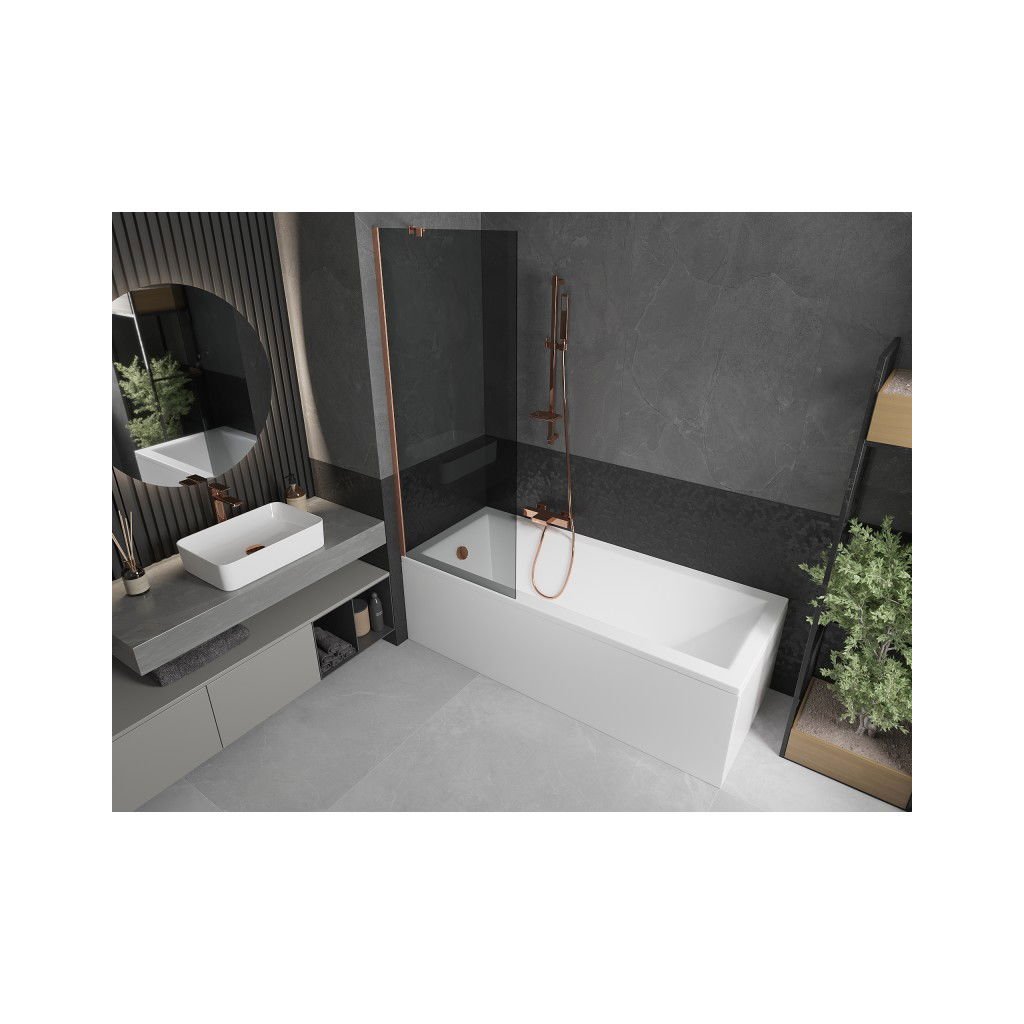 Mexen Next, 1-křídlová vanová zástěna 70 x 150 cm, 6mm šedé sklo, měděná matná, 895-070-000-00-40-65